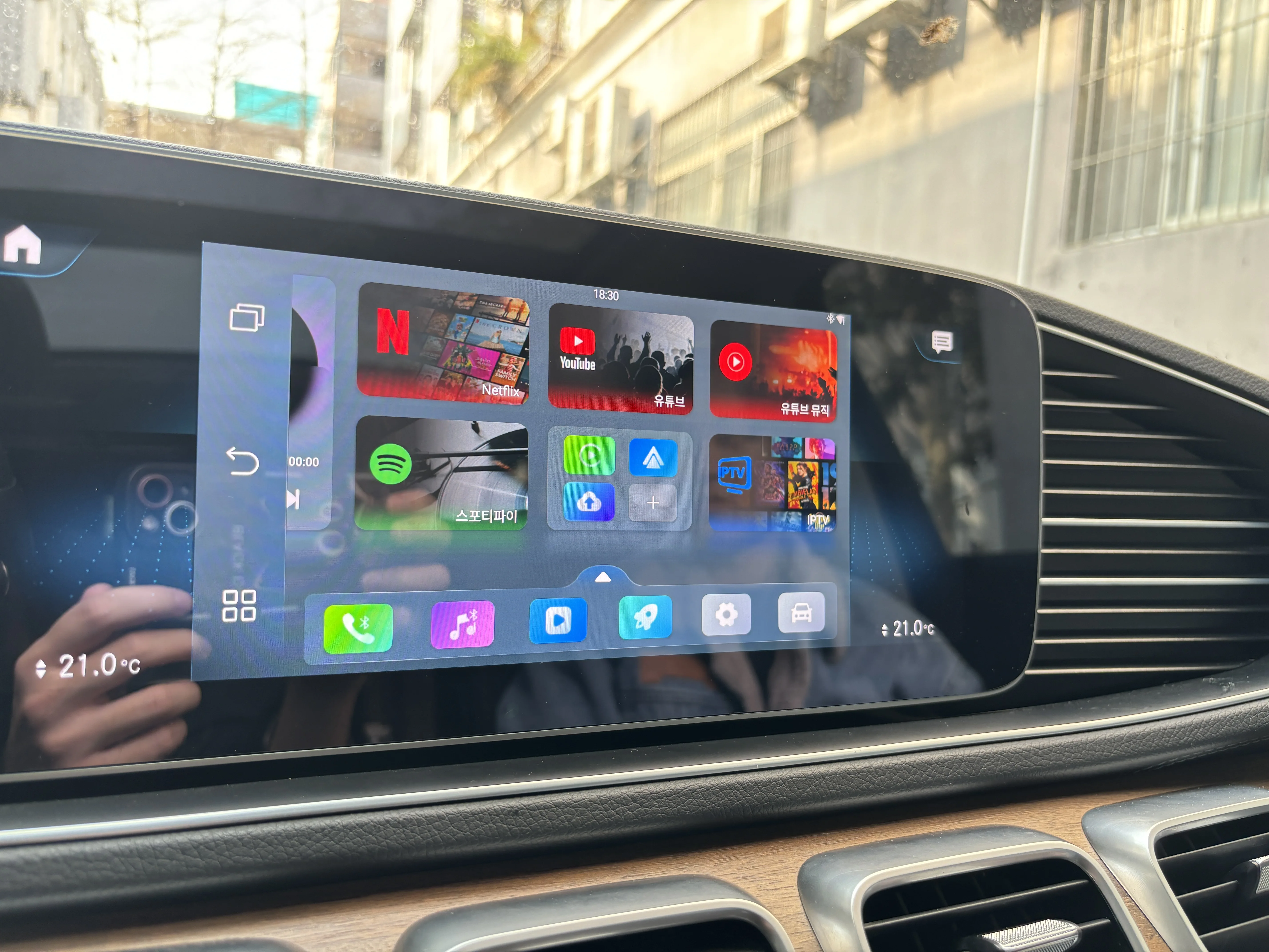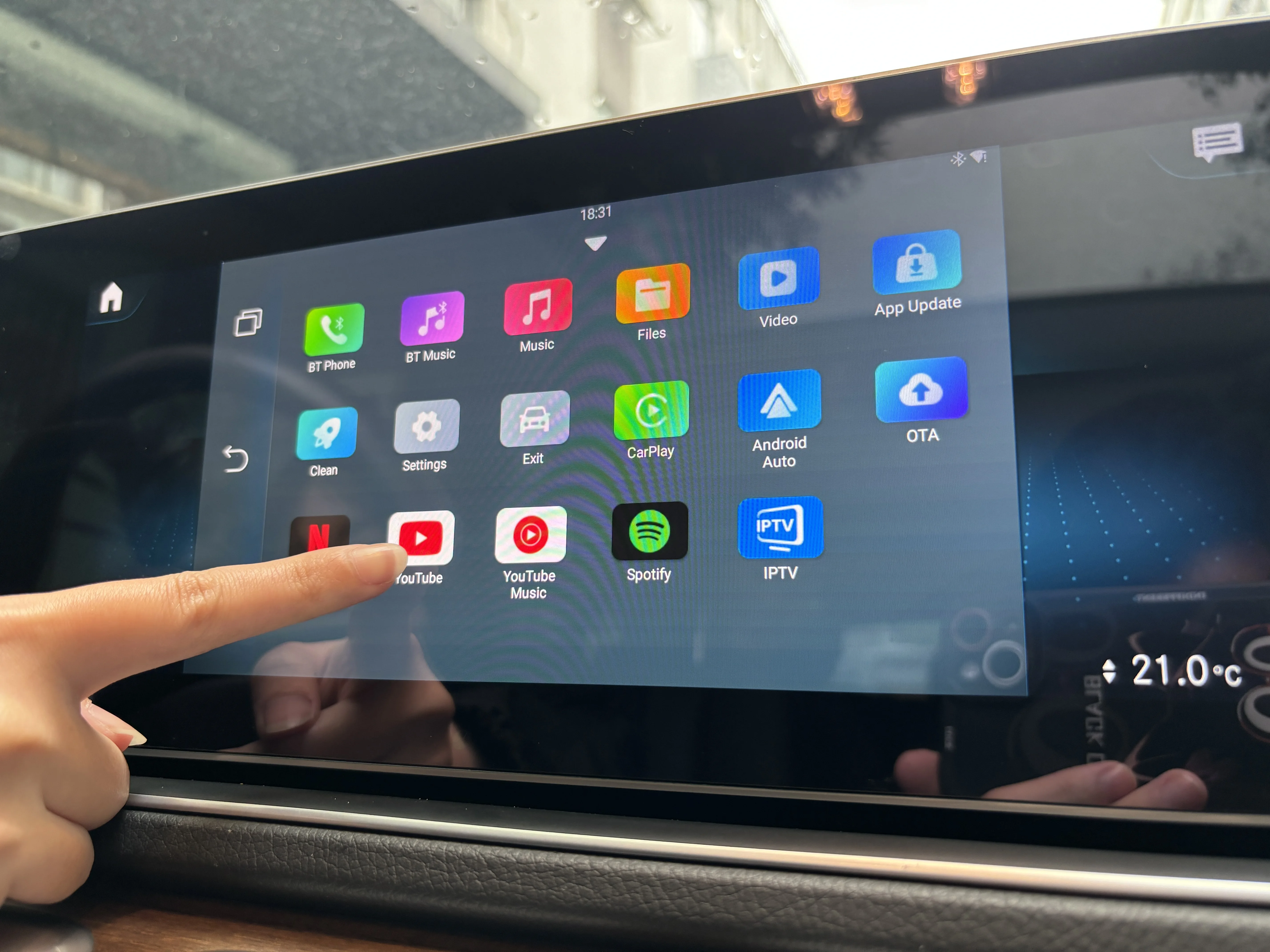 🎥 【Pre-installed YouTube, Netflix, Spotify & IPTV】: The CarPlay AI box comes with an Android system pre-loaded with YouTube, Netflix, Spotify, and IPTV apps. Connect to your mobile hotspot to easily log in and watch your favorite video. Features include split screen, and voice control (Siri, Google). NOTE: App downloads are not supported and a touch screen is required.